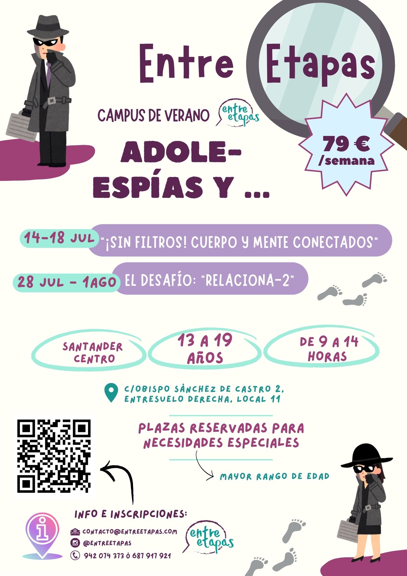 Ya están abiertas las inscripciones para "Peque-Detectives" y “Adole-espías”, los campus de verano para niños y adolescentes organizados por la Asociación Entre Etapas. Reserva tu plaza en los siguientes formularios: