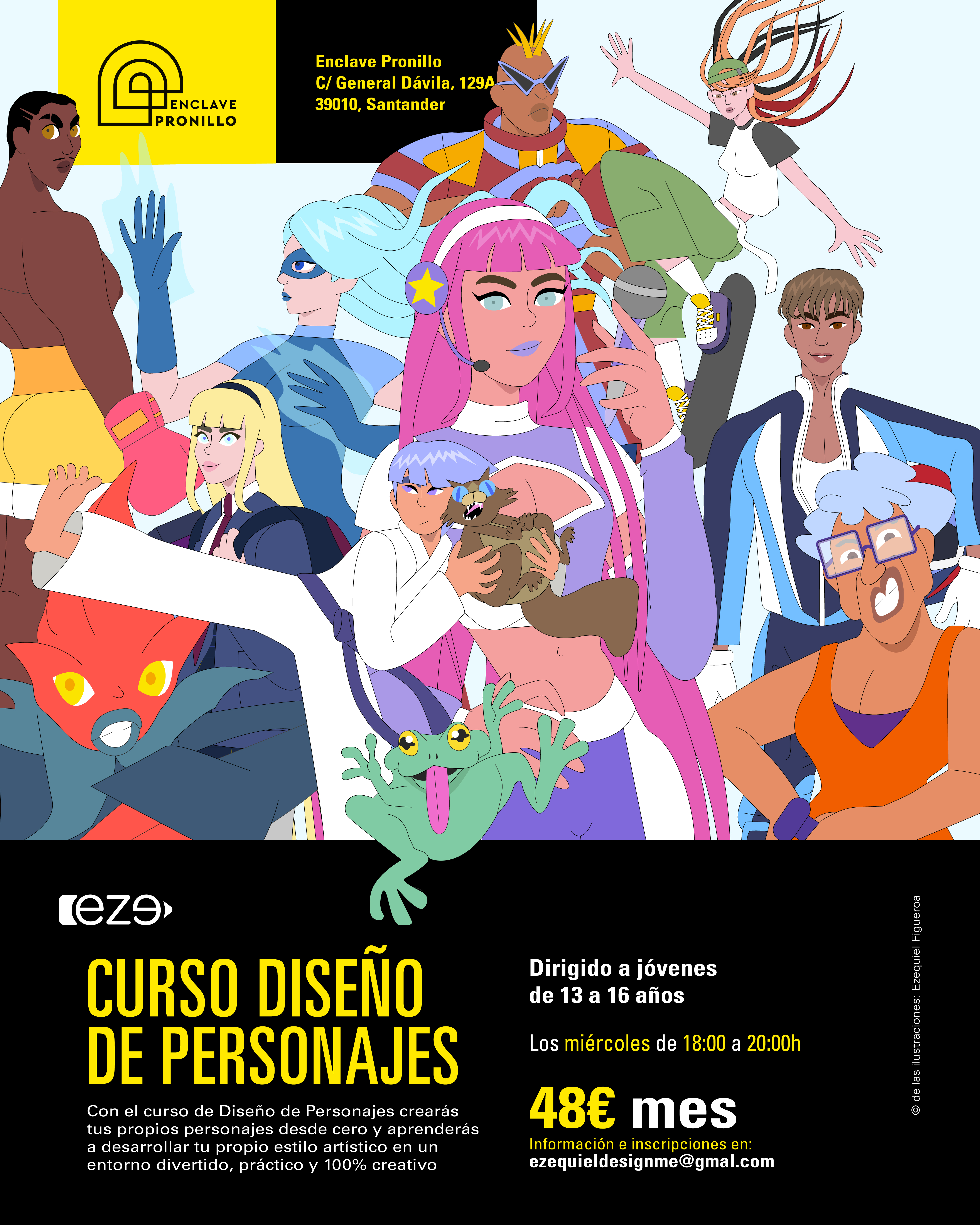 El curso de Diseño de Personajes está dirigido a jóvenes de 13 a 16 años que quieran aprender a crear personajes desde cero y descubrir su propio estilo artístico en un entorno divertido, práctico y creativo.