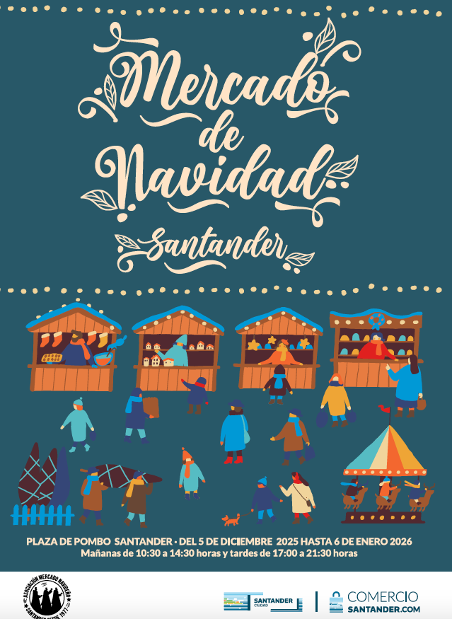 La Plaza de Pombo acoge el Mercado de Navidad desde el 5 de diciembre al 6 de enero, una iniciativa organizada por el Ayuntamiento de Santander y la Asociación Cultural Mercado de Navidad.