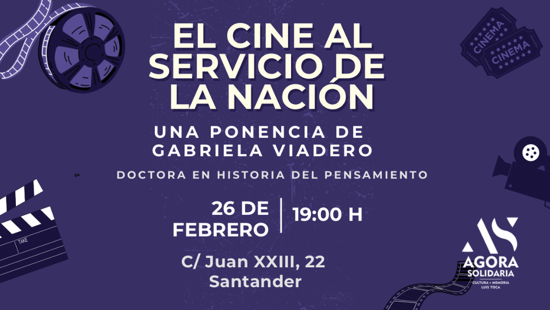 El Ágora Solidaria Cultura y Memoria Luis Toca acoge la charla “El cine al servicio de la nación”, a cargo de la investigadora y autora Gabriela Viadero Carral, una propuesta para reflexionar sobre el papel del cine español durante la dictadura franquista como herramienta de construcción y difusión de una determinada idea de España.