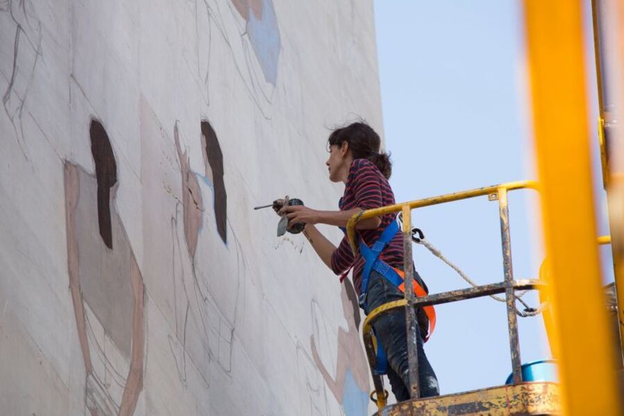La artista catalana Marina Capdevila fue una de los creadoras que participó en la novena edición del festival de arte público 'Desvelarte' que organiza la asociación ACAI con el apoyo de la Fundación Santander Creativa (FSC).