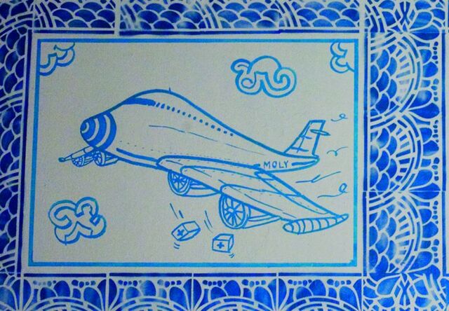 El colectivo ruso Zukclub dejó su huella en el Festival de Arte Público Desvelarte en 2012. Se puede ver en el Pasaje de Peña (boca de las estaciones). La obra se titula "Bosque de plástico".