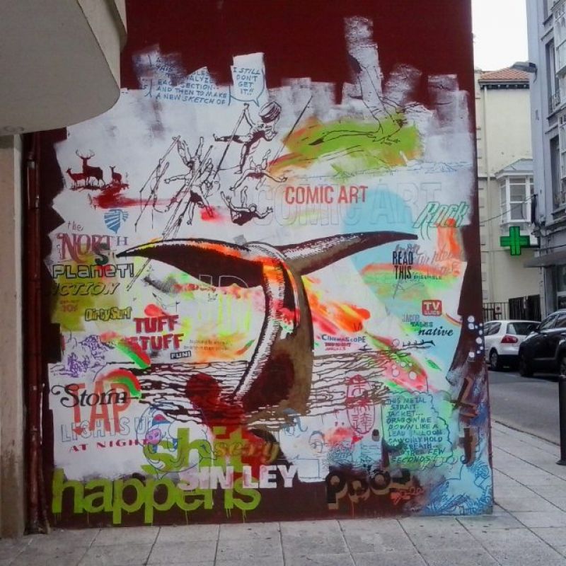 El proyecto Huellas, uno de los más veteranos de Desvelarte, festival de arte público patrocinado por la Fundación Santander Creativa, sigue dejando en nuestra ciudad diferentes intervenciones murales en distintos edificios del casco urbano.