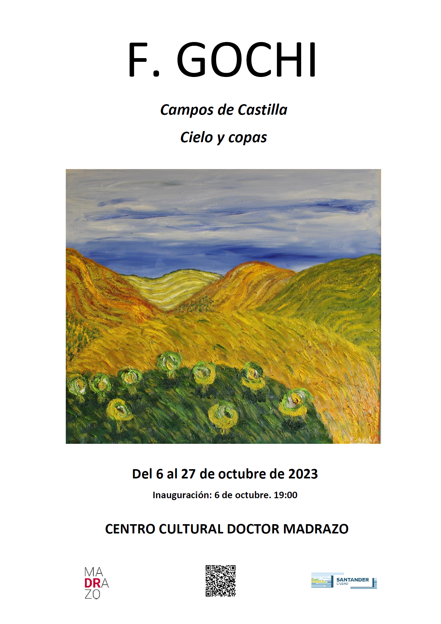 Del 6 al 27 de octubre se podrá visitar en el Centro Cultural Dr. Madrazo una exposición de pintura del artista F. Gochi. La inauguración tendrá lugar el viernes 6, a las 19:00 h. A los asistentes a la misma, se les obsequiará con una lámina numerada y firmada de su obra.