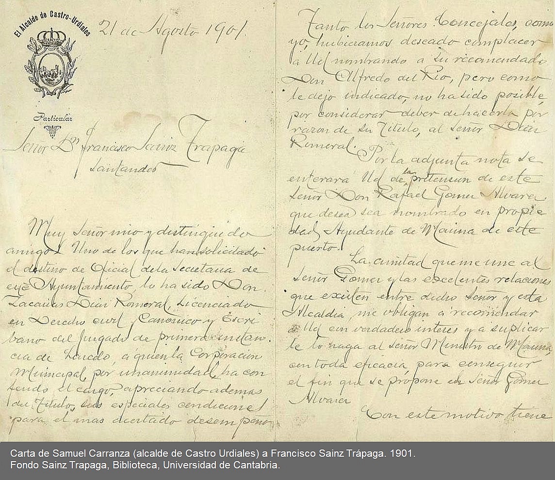 UC ReCrea es una plataforma online para consultar, disfrutar o investigar manuscritos, fotografías, planos y otros documentos de la herencia cultural de Cantabria, procedentes de la digitalización de archivos personales o de empresas y de proyectos e iniciativas de estudio y recuperación del patrimonio y la memoria, como es el caso del portal “Desmemoriados”. En bastantes casos, esta consulta y acceso público es posible gracias a las generosas donaciones, legados o depósitos de particulares, que se conservan como fondos y colecciones especiales en la Biblioteca de la Universidad de Cantabria y merecen el reconocimiento social.