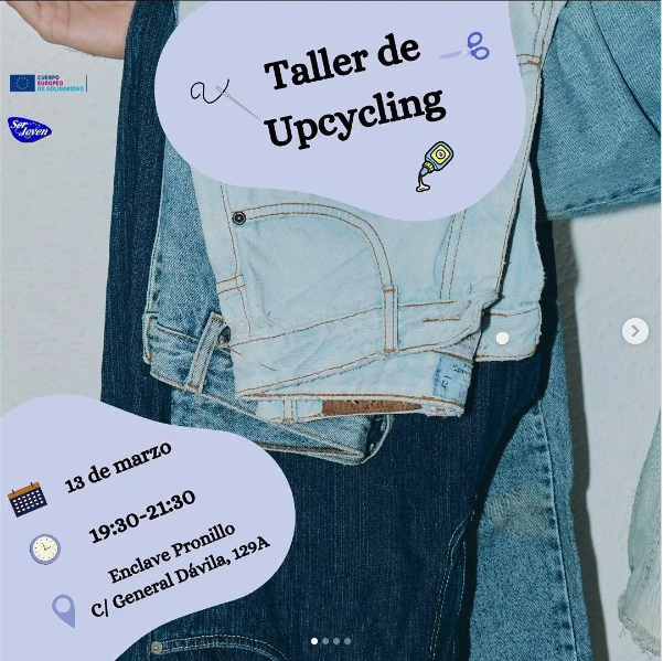 La Asociación Ser Joven te invita a participar en un Taller de Upcycling, donde prendas viejas se transformarán en bolsos y accesorios únicos. El taller es gratis y se proporcionará todo el material.