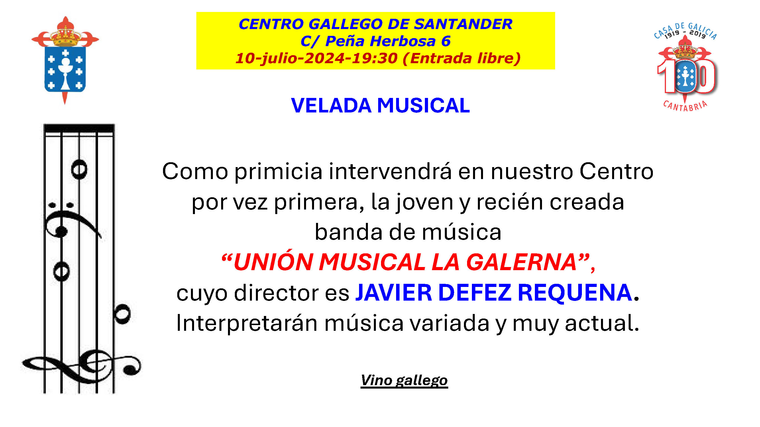 Actuación de la la joven y recién creada banda de música “Unión musical La Galerna”, dirigida por Javier Defez Requena, en el Centro Gallego.