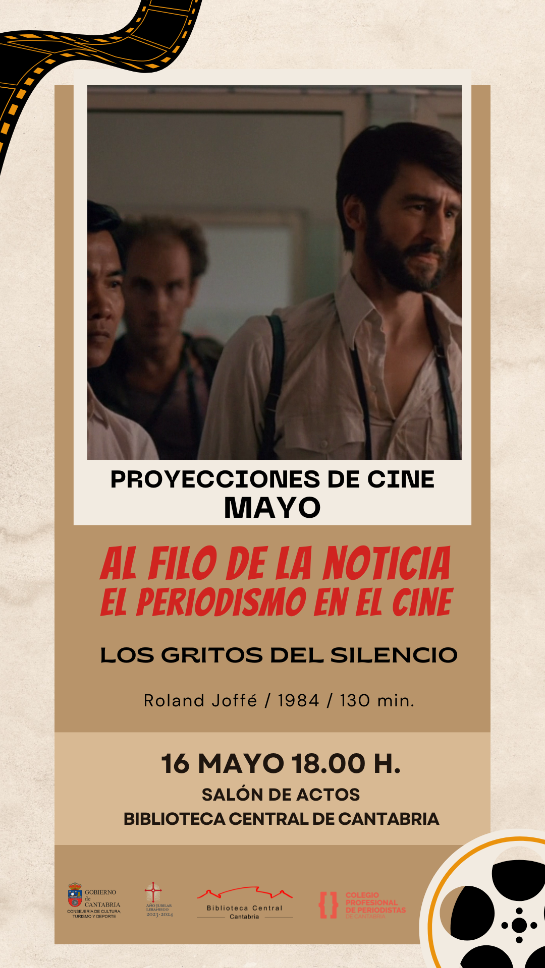 La Biblioteca Central de Cantabria, en colaboración con el Colegio Profesional de Periodistas de Cantabria, pone en marcha durante el mes de mayo un ciclo de cine integrado por seis proyecciones que pretende acercar al espectador la estrecha relación entre cine y periodismo a través de diferentes géneros como el periodismo de guerra, sensacionalista, de investigación, de crítica teatral o del día a día.