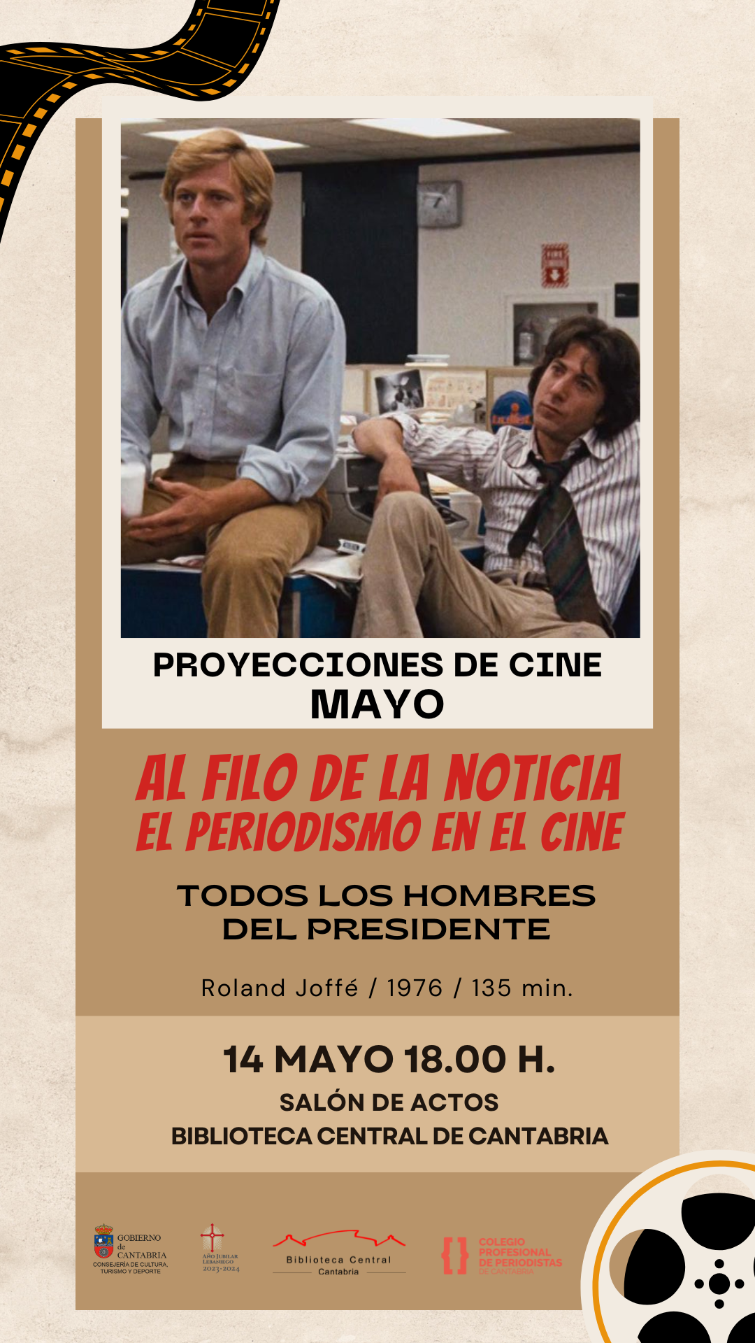 La Biblioteca Central de Cantabria, en colaboración con el Colegio Profesional de Periodistas de Cantabria, pone en marcha durante el mes de mayo un ciclo de cine integrado por seis proyecciones que pretende acercar al espectador la estrecha relación entre cine y periodismo a través de diferentes géneros como el periodismo de guerra, sensacionalista, de investigación, de crítica teatral o del día a día.
