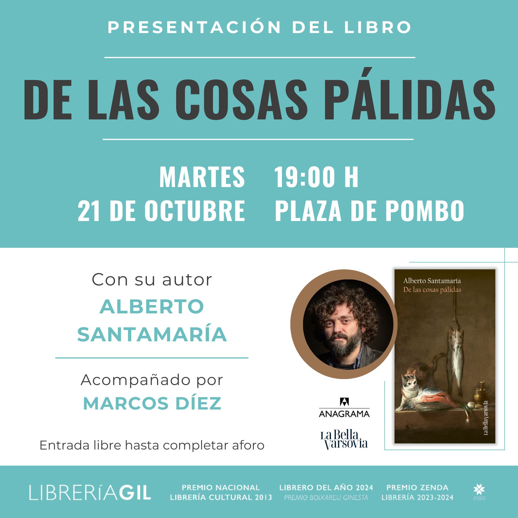 Presentación del libro “De las cosas pálidas”, de Alberto Santamaría. El autor estará acompañado por Marcos Díez. (Editorial La Bella Varsovia / Anagrama).