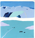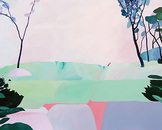 A lo largo de su trayectoria artística, siempre ha transitado entre la abstracción y la figuración, sus obras nos ofrecen paisajes aparentemente serenos, en ocasiones poblados por personajes o animales que desprenden ternura. Aunque es cierto que sin una amenaza visible, nos transmiten una cierta inestabilidad, una inquietud difícil de definir. Los planos se articulan en superficies de colores potentes que parecen fundirse unas con otras sin llegar a perder su independencia, precaria, tanto como la supuesta racionalidad de lo figurativo o la pureza de lo abstracto.