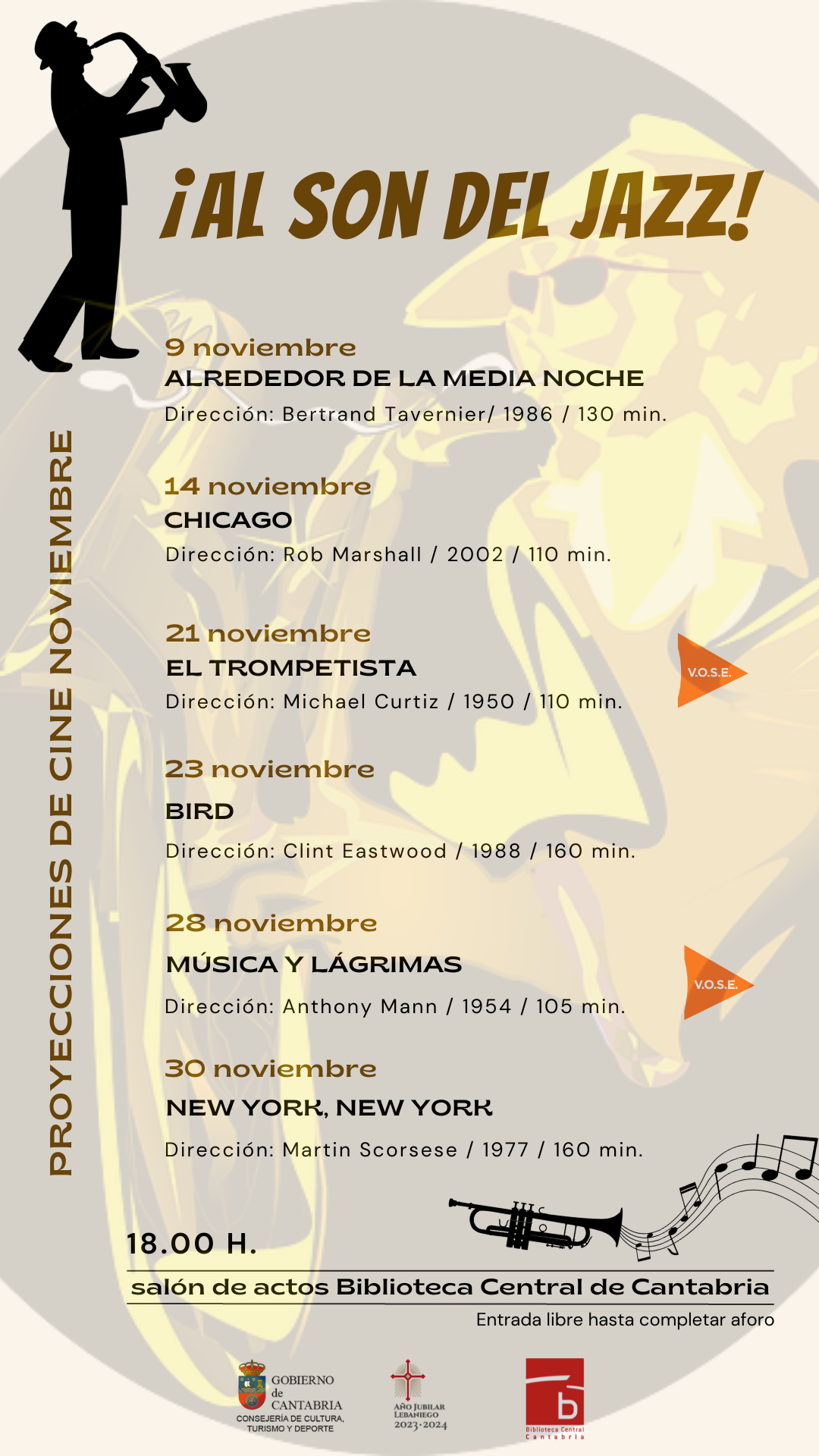 La música de Jazz va a ser la protagonista de la programación cinematográfica de noviembre en la Biblioteca Central de Cantabria a través de seis películas, una pequeña pero significativa muestra de esa conjunción entre cine y jazz que abarca diferentes épocas y estilos.
