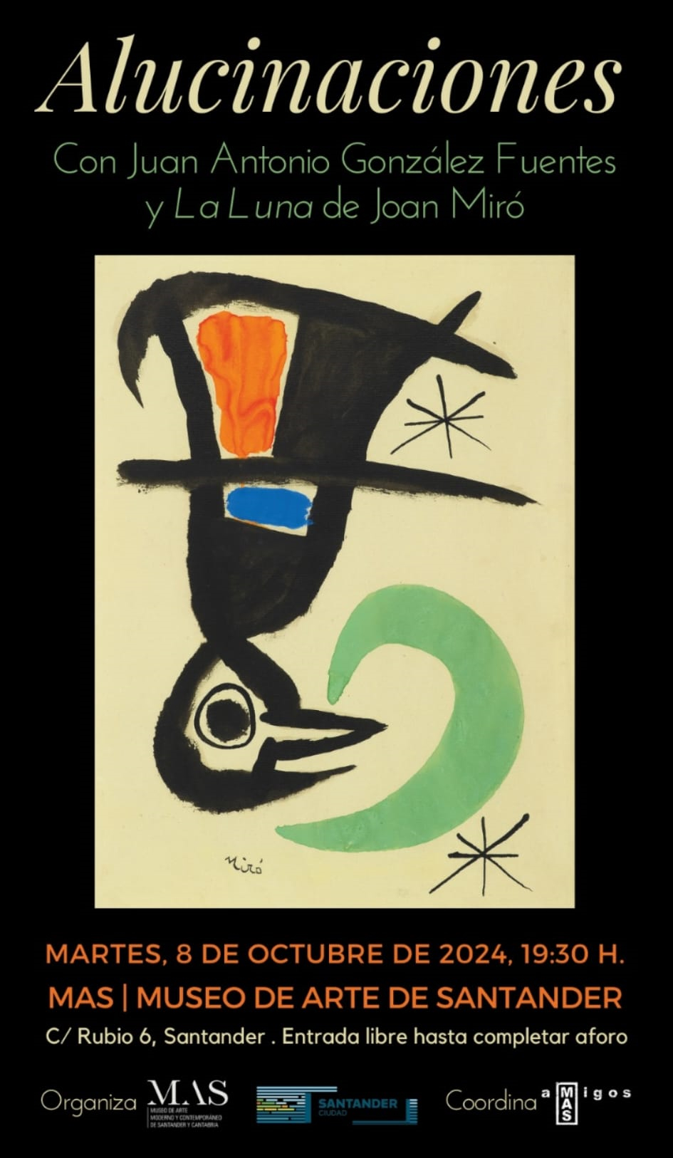 El MAS, Museo de Arte de Santander, retoma “Alucinaciones” que, coordinado por amigosMAS, comenzará el martes 8 de octubre, con la disertación de Juan Antonio González Fuentes sobre La Luna de Joan Miró
