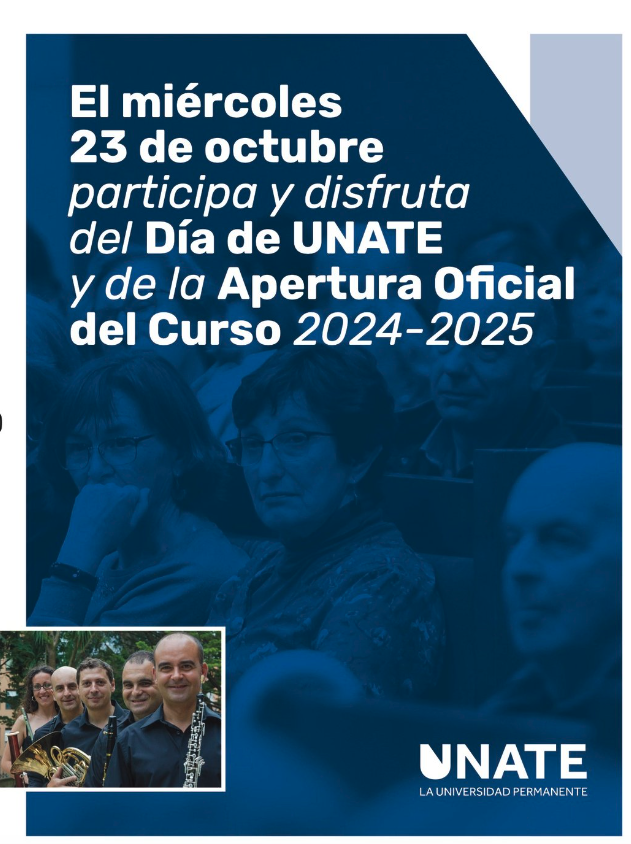 Por todo ello, han ampliado la tradicional Apertura Oficial del Curso a un Día UNATE, que celebrarán en comunidad el miércoles 23 de octubre. La primera cita es el Acto Académico de Apertura del curso que comenzará a las 12h en el Paraninfo de la Universidad de Cantabria (UC) situado en la Calle Sevilla de Santander. El acto, presidido por el rector de la UC, Ángel Pazos Carro, contará con la lección inaugural de Olga Agüero, decana del Colegio Oficial de Periodistas de Cantabria, y con la presencia de una diversa representación institucional, y la actuación del coro Atalaya Voces.