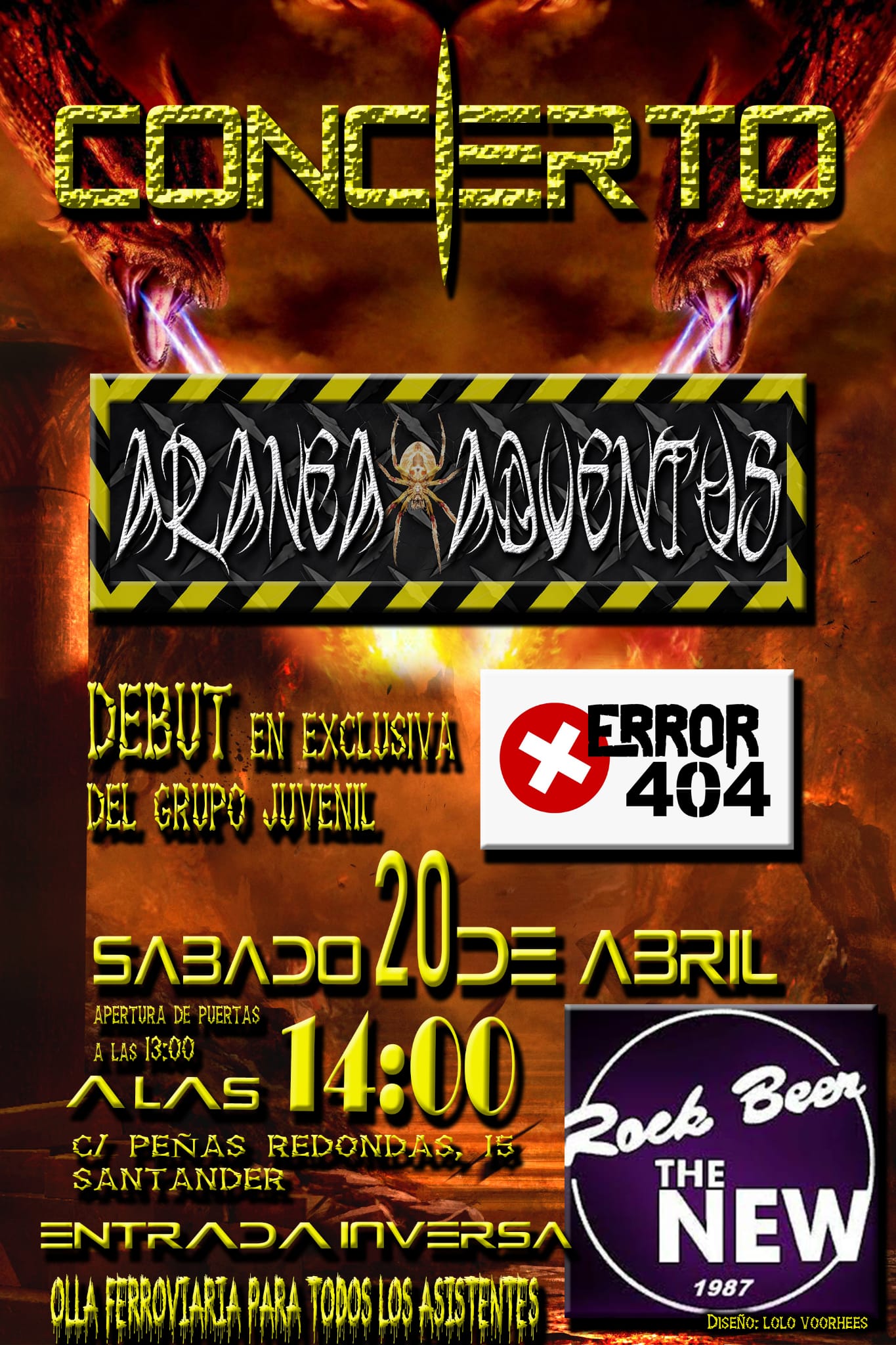 La sala Rock Beer the New presenta el debut de ERROR404, grupo formado por 5 chavales-amigos de 12 años que a las 14 horas se subirán al escenario del New. A continuación serán los componentes de Aranea Adventus los encargados de poner la música a la jornada.