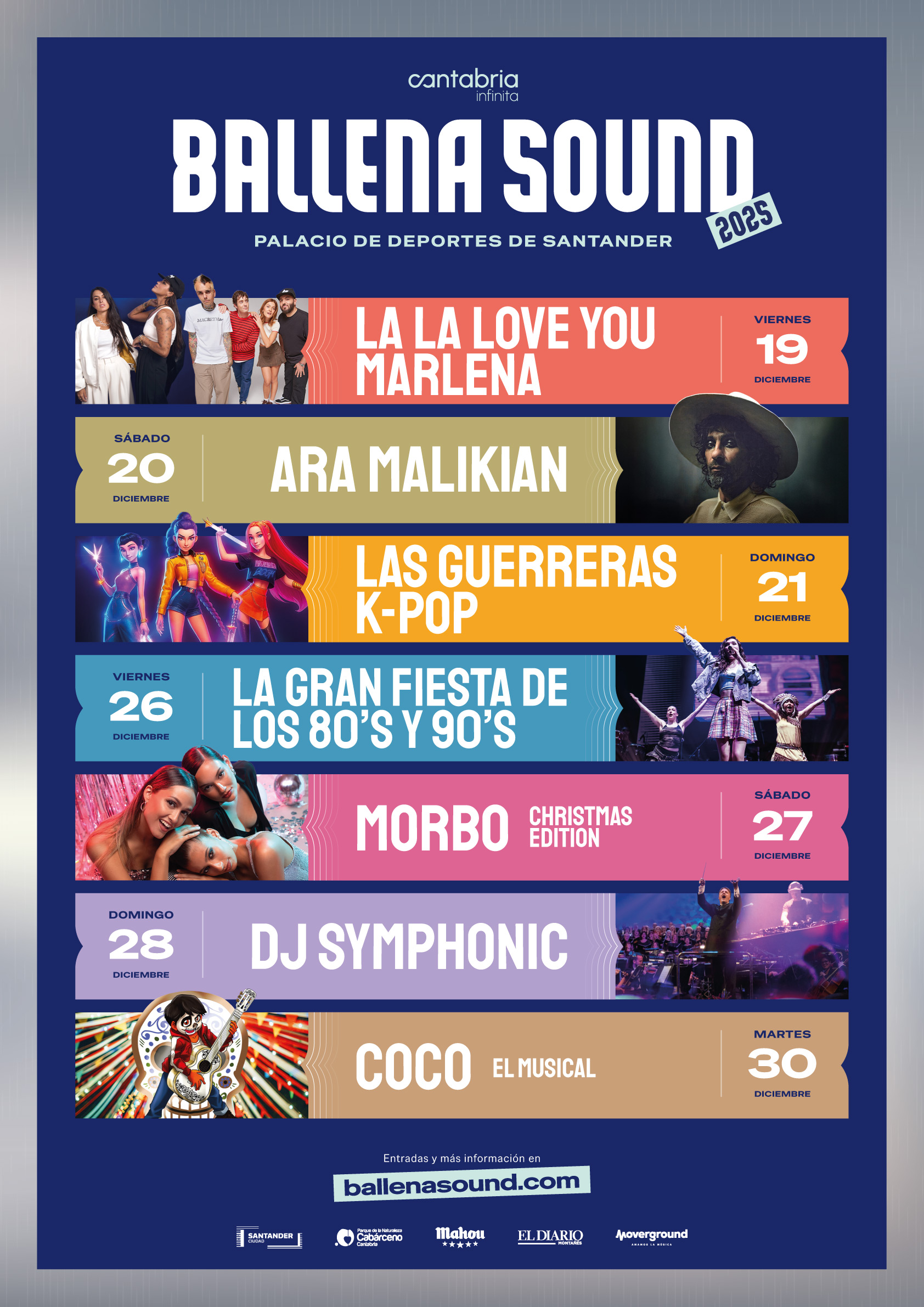 Santander se prepara para vivir un diciembre inolvidable con el nacimiento de Ballena Sound, un nuevo ciclo de conciertos y espectáculos musicales que llenará el Palacio de Deportes de Santander de energía, emoción y diversión durante las fiestas navideñas.