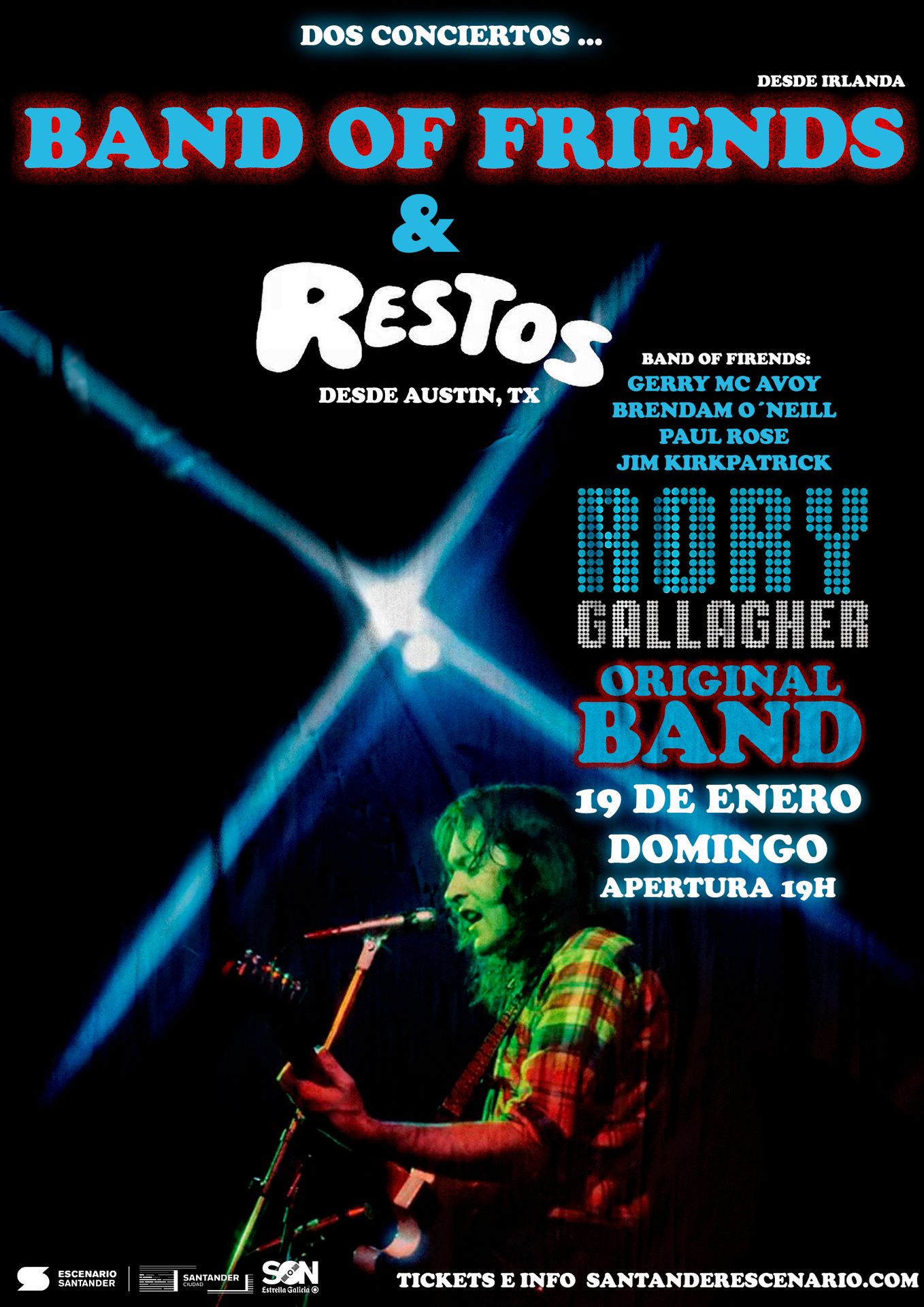 El domingo 19 a las 19:00h Escenario Santander abrirá sus puertas para acoger un doble directo con las actuaciones de Band of Friends (Rory Gallagher Band) y Restos.