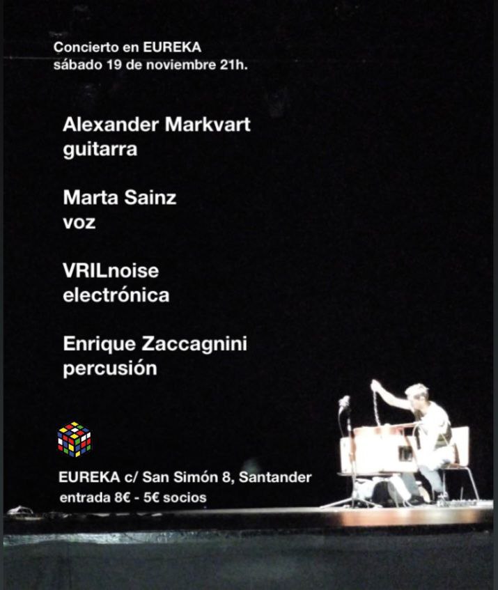 El sábado 19 de noviembre a partir de las 21h, el Centro Cultural Europeo Eureka ofrece breves conciertos experimentales a cargo de Alexander Markvart, Marta Sainz, VRILnoise Enrique Zaccagnini.