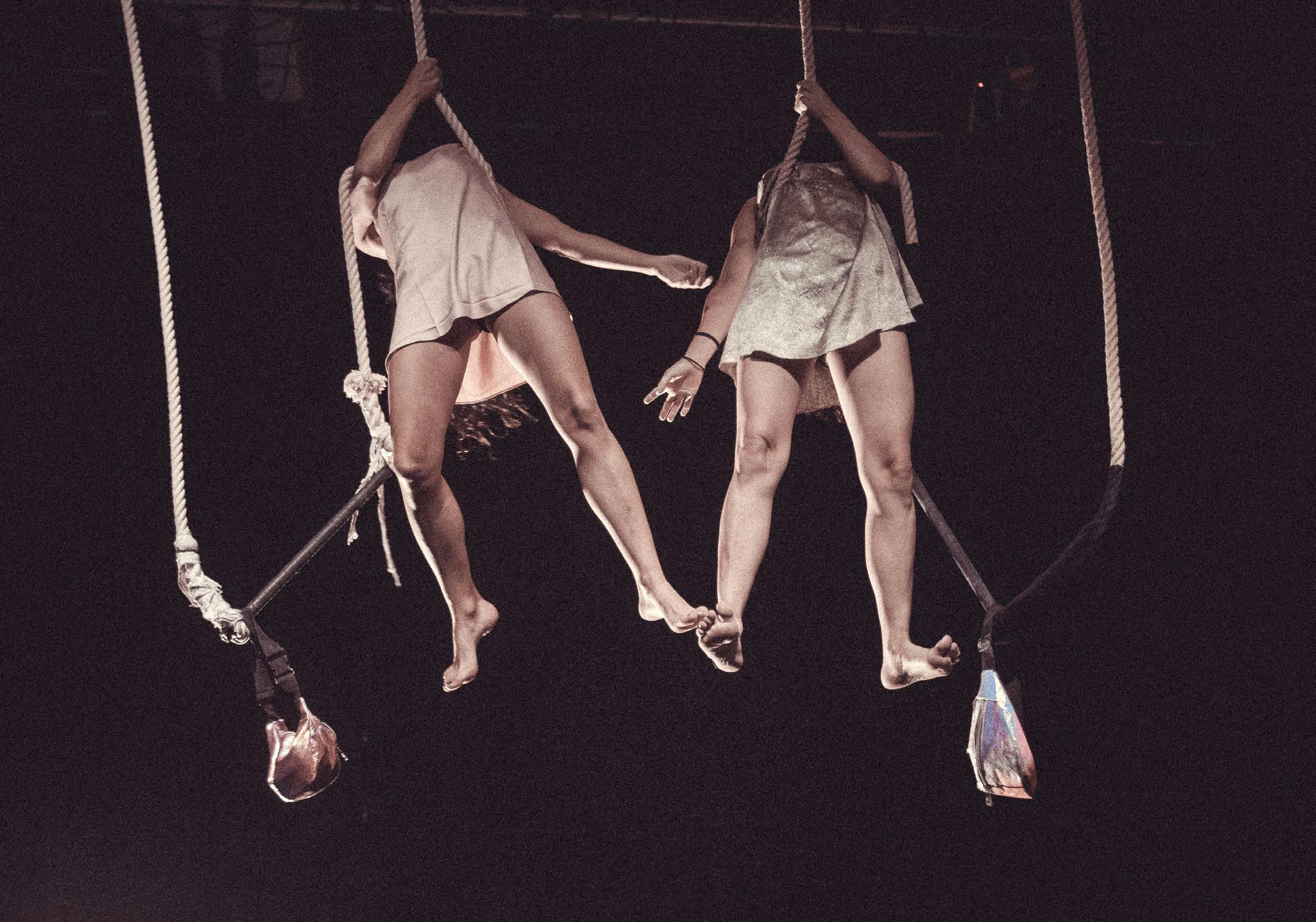 Una distopía circense en clave surrealista. Dos personajes separados por un muro habitan sus múltiples soledades en un universo compuesto por trapecios, historias circulares y situaciones extravagantes. By ò Bu reflexiona sobre una soledad eterna, tan profunda que se hace poliédrica y de la que es difícil escapar incluso cuando aparece otro ser tan solo como tú. A través de este encuentro surge una reflexión sobre el suicidio. “Nuestra intención es generar un discurso sobre estos tres ejes (soledad, encuentro y suicidio) que hable de la extraordinaria complejidad que existe en ellos y que no los asocie a algo esencialmente positivo o negativo, sino a algo más honesto y probablemente, absurdo.”