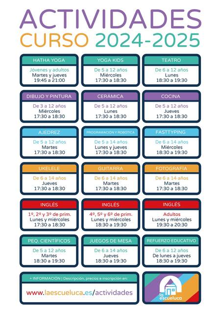 Activo durante todas las semanas del mes de julio de 9:00h a 14:00h, con opción de madrugadores (8:30) y tardones (14:30) , podrás apuntar a tu(s) peque(s) y disfrutar de descuentos por hermanos y contratación multisemana.