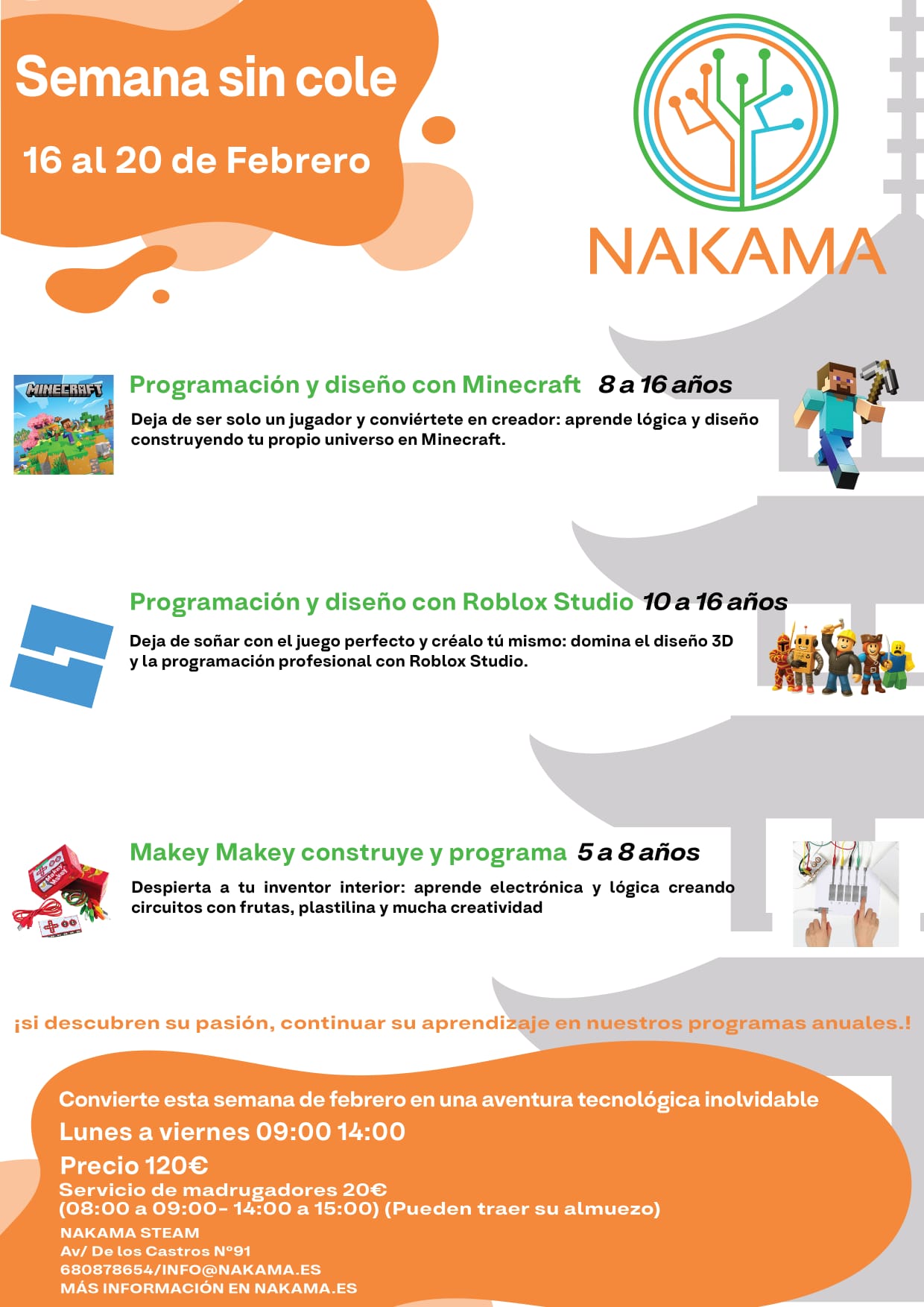Esta semana no lectiva de Carnaval, convierte las vacaciones en una experiencia educativa, creativa y divertida. En el Campus Tecnológico de Carnaval 2026, niños y niñas aprenderán programación, diseño y electrónica a través de las herramientas que más les motivan: Minecraft, Roblox Studio y Makey Makey.