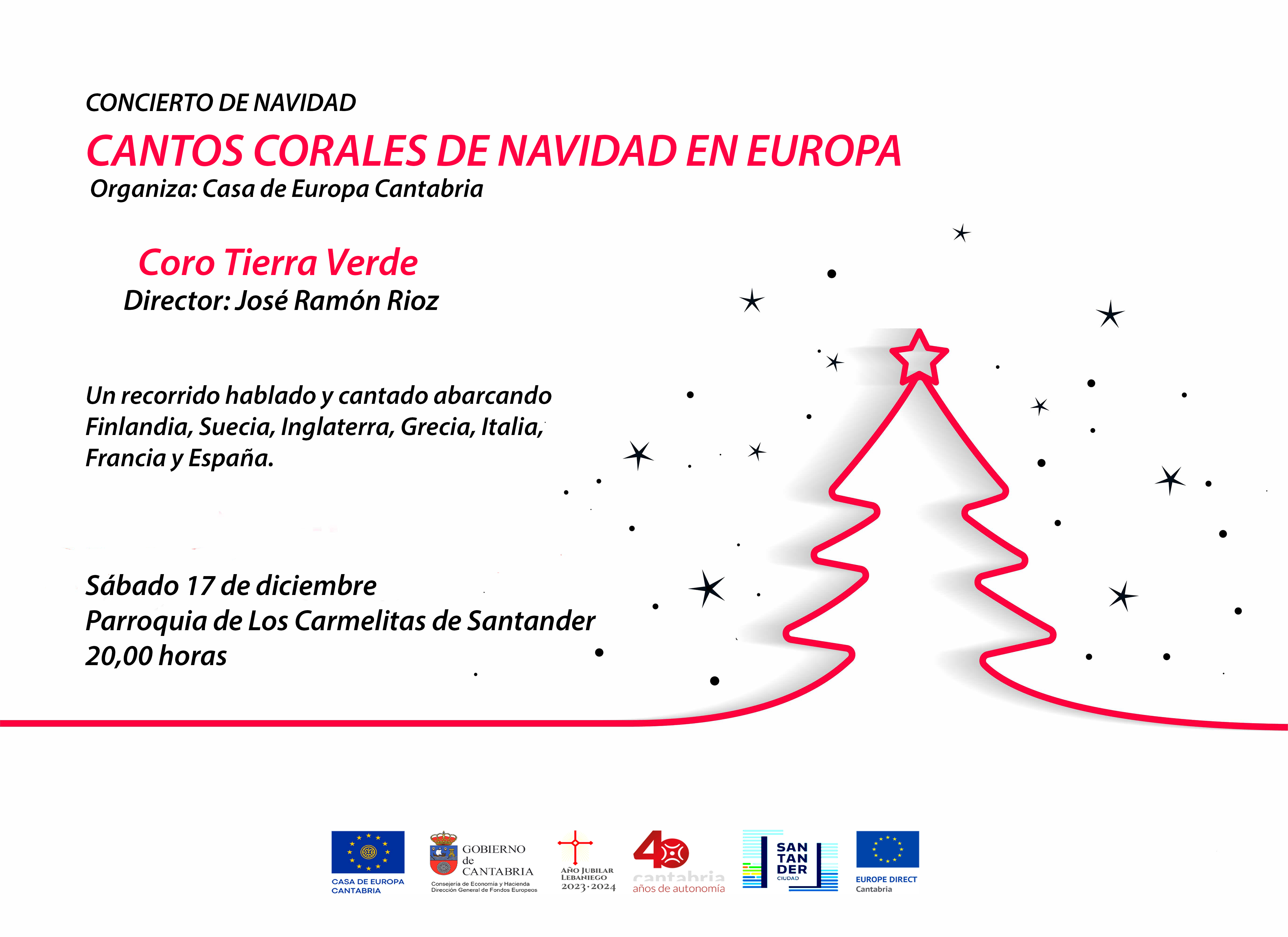 La Casa de Europa en Cantabria organiza este concierto de Navidad protagonizado por el Coro Tierra Verde en la Parroquia de los Carmelitas de Santander el sábado 17 de diciembre a las 20:00 horas.