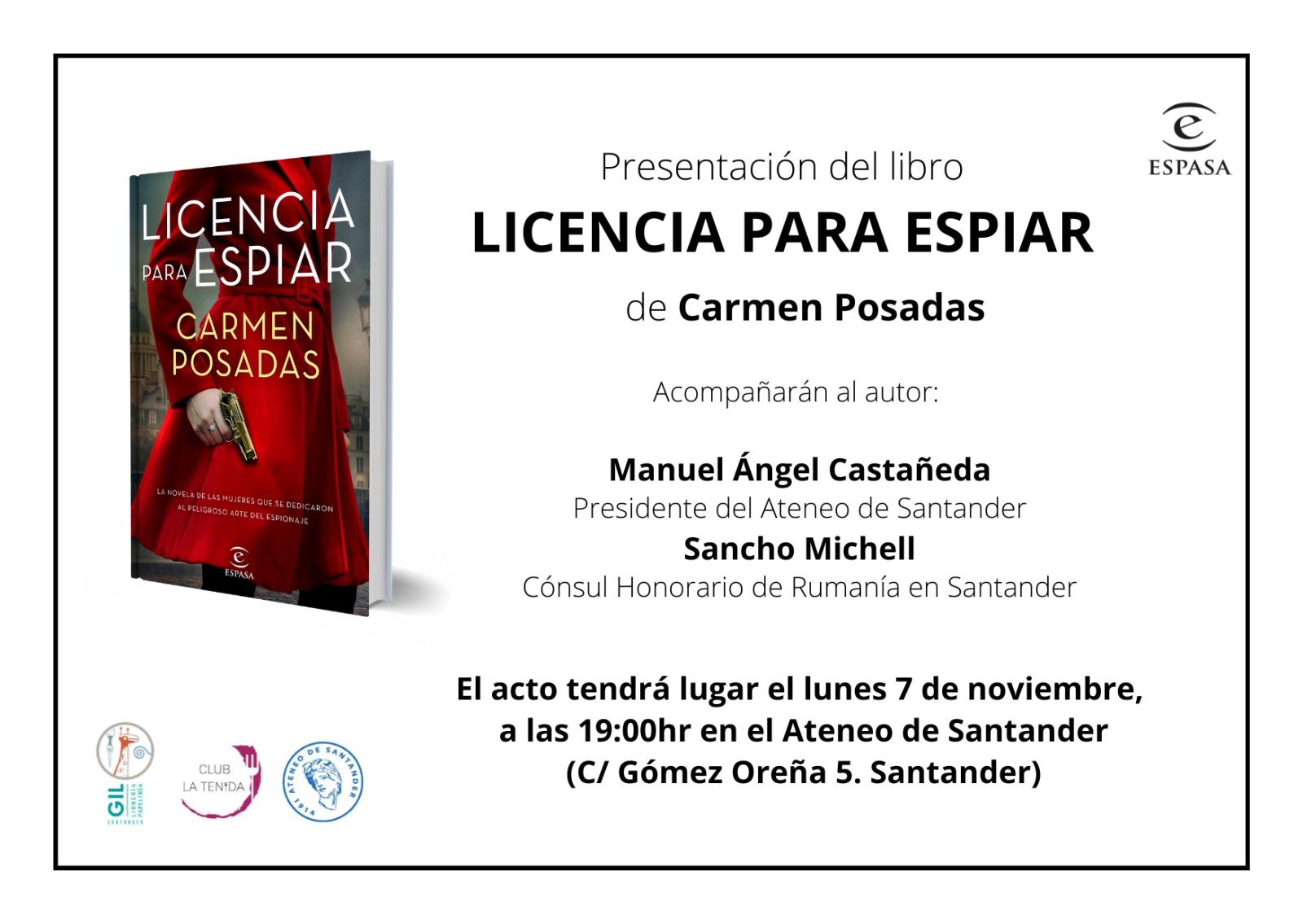 En la presentación, la autora estará acompañada por Manuel Ángel Castañeda, presidente del Ateneo, y Sancho Michell, cónsul honorario de Rumanía en Santander.