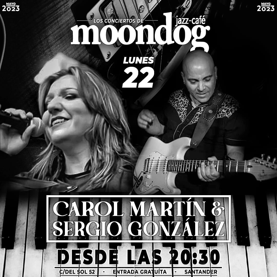 Este lunes 22 de mayo estarán en directo en Moondog Carol Martín& Sergio González, una maravillosa voz y un genial guitarrista.