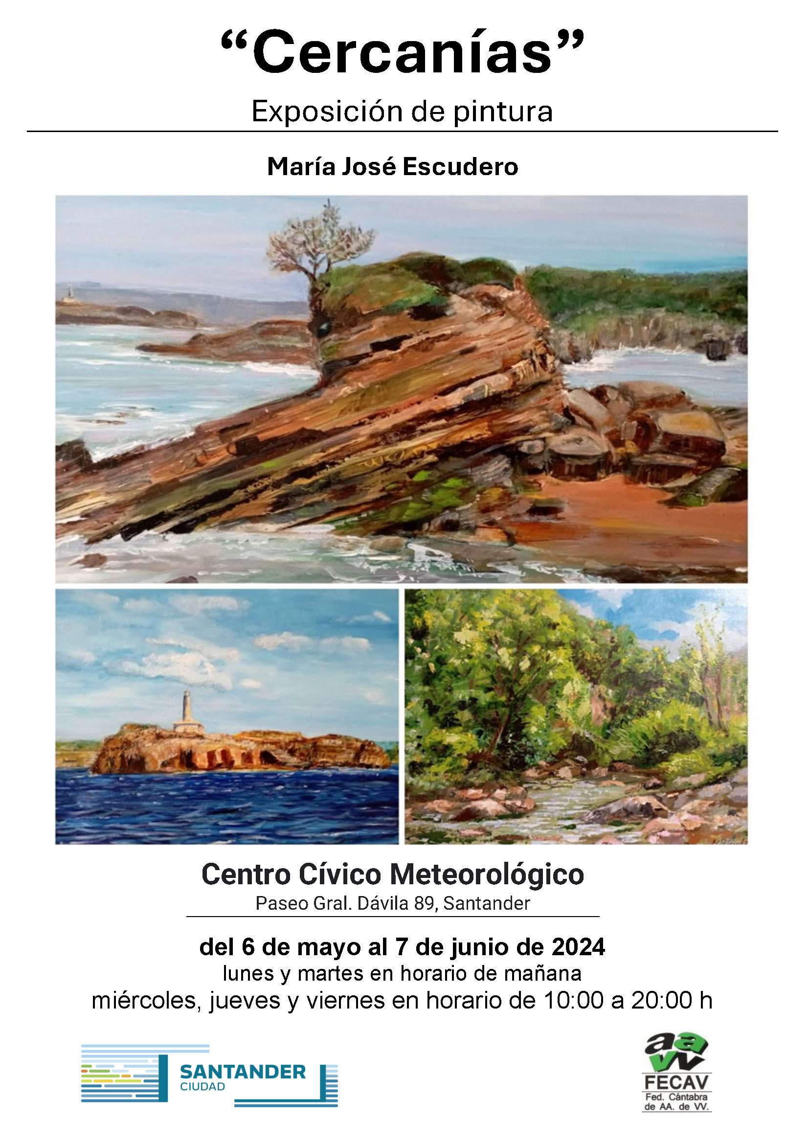 “Cercanías” es la primera exposición individual de María José Escudero, que presenta en el Centro Cívico Meteorológico de Santander una selección de 22 pinturas de paisajes en acrílico sobre lienzo o tabla, realizadas durante los últimos diez años. El título de la exposición alude a su entorno geográfico más próximo, ese que rodea la bahía de Santander y se adentra en el interior de Cantabria, ascendiendo hasta los Picos de Europa.