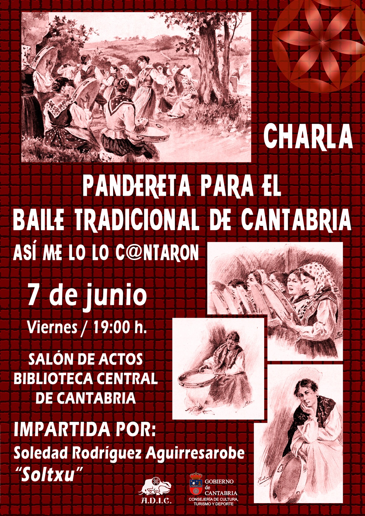 El Salón de Actos de la Biblioteca Central de Cantabria acoge el 7 de junio a las 19:00h la charla “Pandereta para el baile tradicional en Cantabria", impartida por Soledad Rodríguez Aguirresarobe, “Soltxu”.