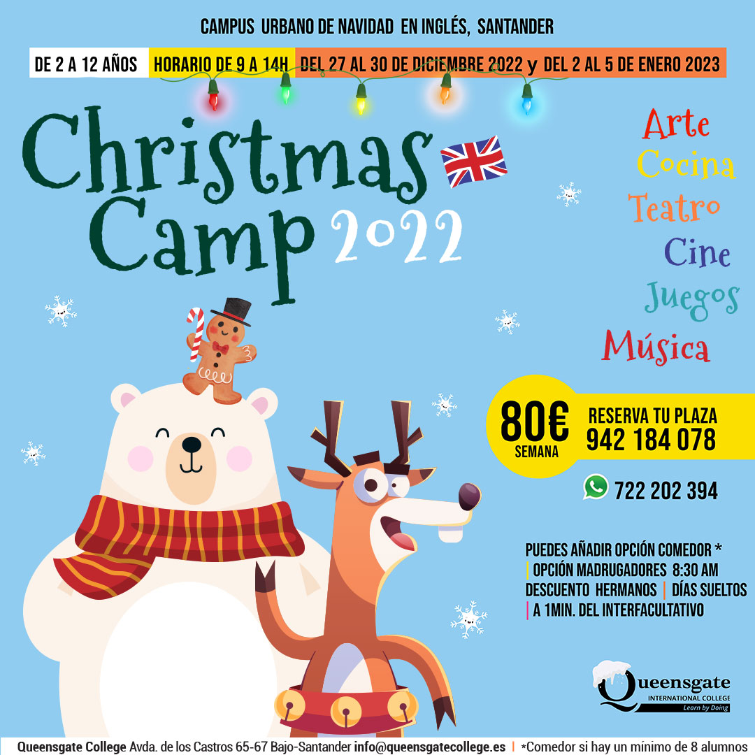 Más información: https://www.queensgatecollege.es/campus-de-navidad-en-ingles-en-santander-2022/