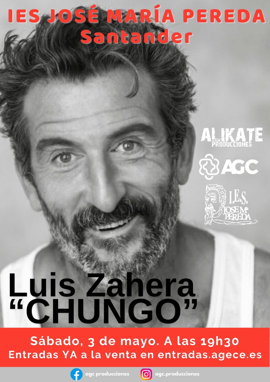 El reconocido actor gallego ganador de dos premios Goya Luis Zahera (As Bestas, Entrevías, Vivir sin permiso, El Reino, Alatriste, Celda 211... ), llega al IES José Mª Pereda con su show de humor “Chungo” .