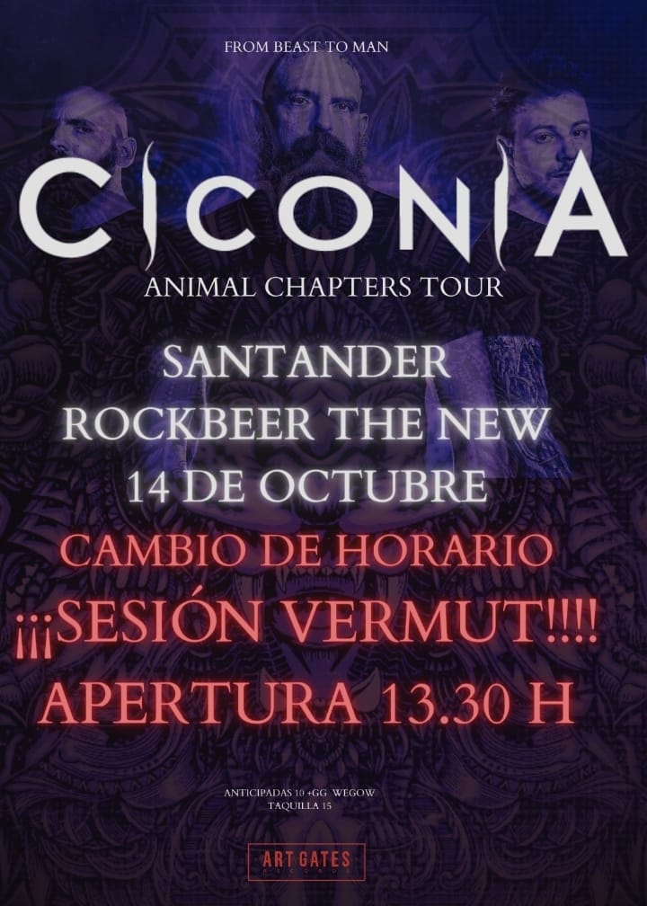 Presentación del nuevo album de Ciconia, "Animal Chapters" en la sala Rock Beer the New. El concierto se enmarca dentro de la gira que ha llevado a la banda por toda Europa durante 2023 y en la que han agotado varias veces las entradas en diversos paises como Alemania, Holanda, Hungria, Letonia.