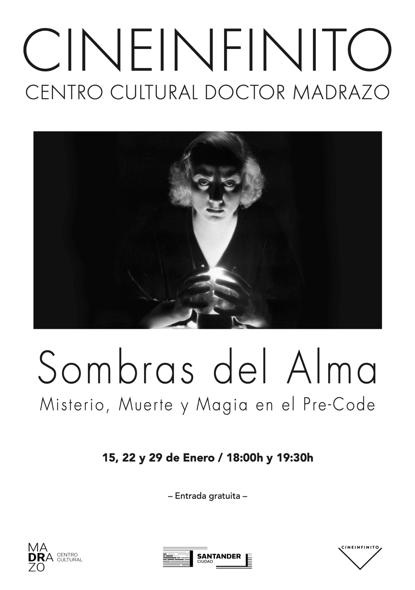 El Centro Cultural Dr. Madrazo y Cineinfinito comienzan la actividad cinematográfica de 2025 con un ciclo de películas clásicas de terror. El ciclo, titulado «Sombras del alma. Misterio, muerte y magia en el Pre-Code», consta de seis películas que tendrán lugar en sesiones dobles -a las 18:00 h y a las 19:30 h- los miércoles 15, 22 y 29 de enero.