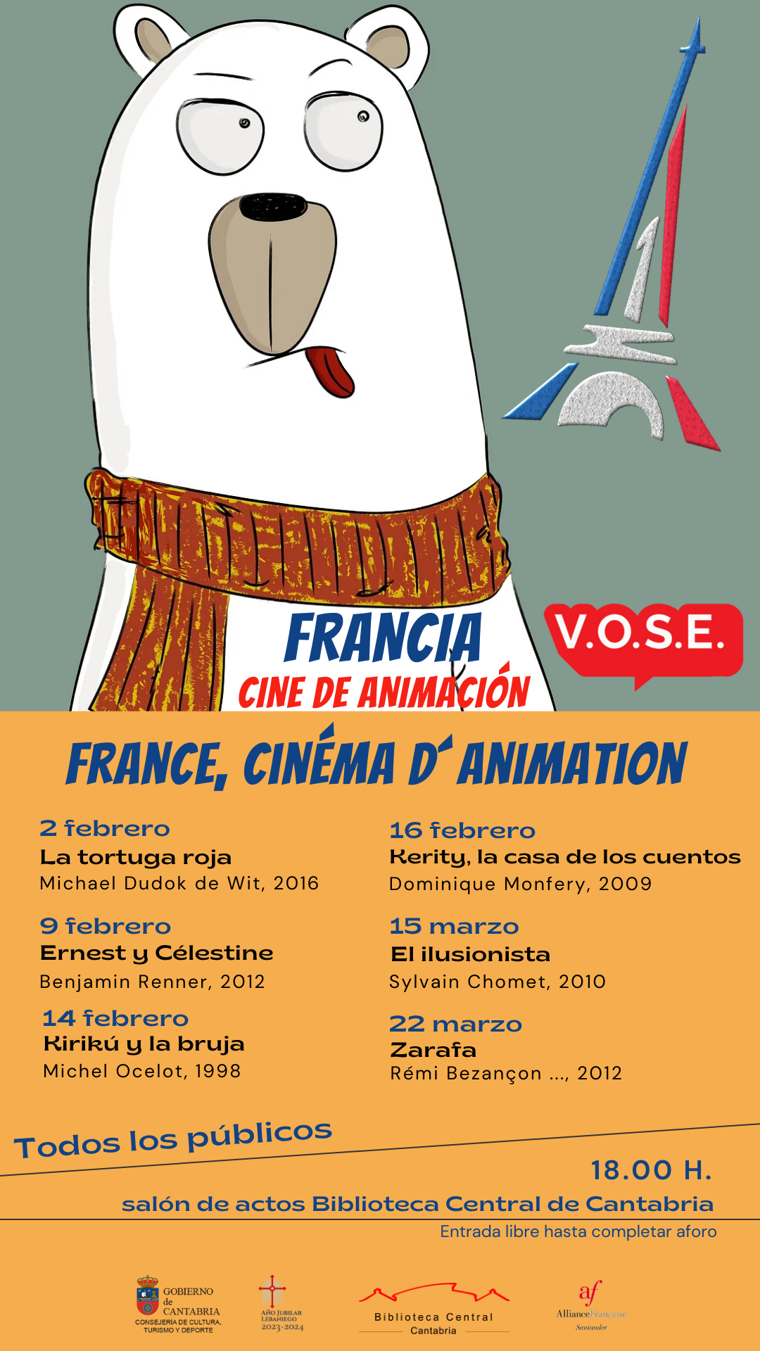 La Biblioteca Central de Cantabria en colaboración con Alianza Francesa, pone en marcha a lo largo de febrero y marzo un ciclo que reúne algunas de las películas francesas de animación más destacadas de las últimas décadas. Las películas se proyectarán en versión original subtitulada y contarán con una breve presentación antes del visionado.