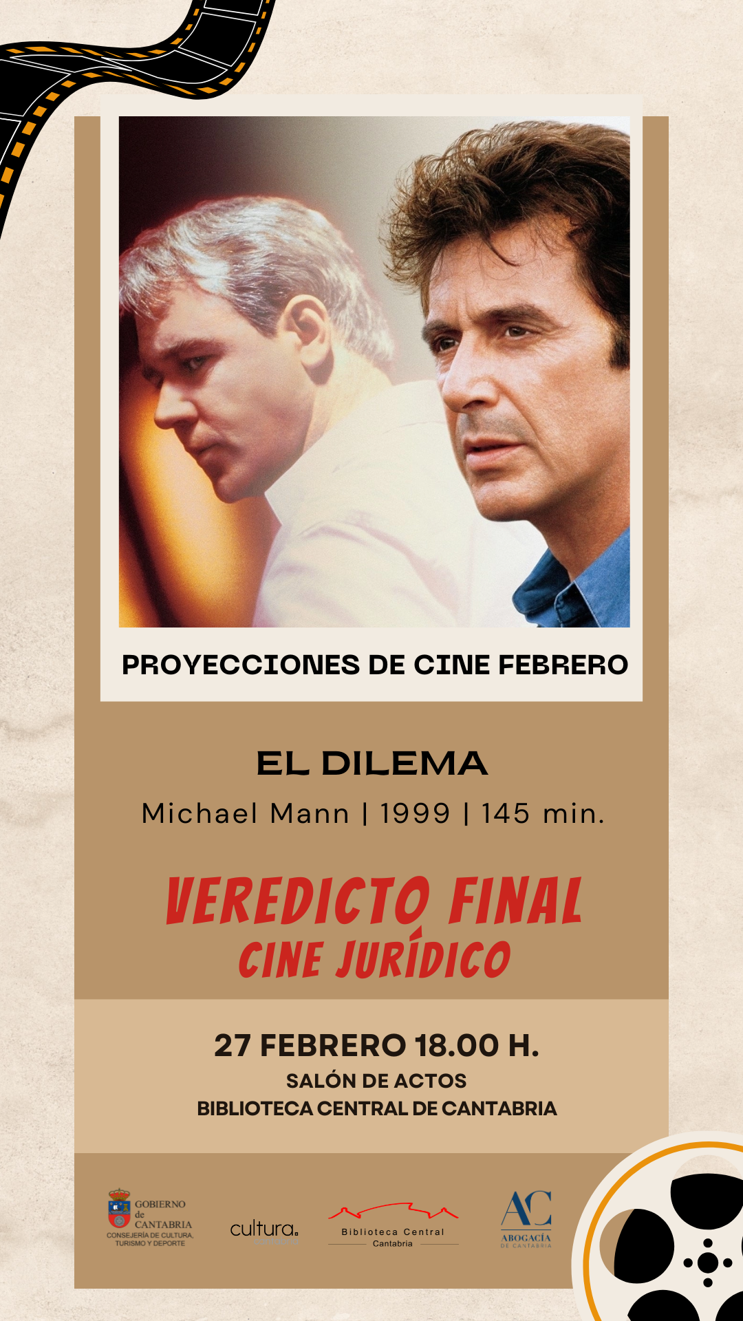 Con motivo del Día Internacional del Abogado, la Biblioteca Central de Cantabria organiza para el mes de febrero un ciclo de proyecciones sobre temática jurídica que incluye 6 películas y que cuenta con la colaboración del Colegio de Abogados de Cantabria.
