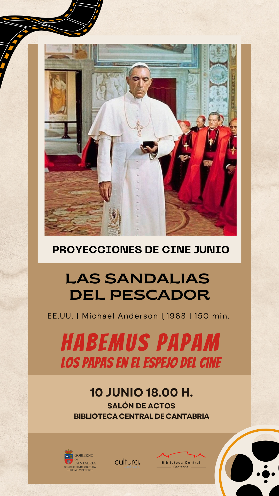 La Biblioteca Central de Cantabria programa en el mes de junio el ciclo de cinefórum “Habemus Papam. Los Papas en el espejo del cine”. El programa lo conforman cinco proyecciones que van desde largometrajes con argumentos que recrean, en mayor o menor medida, la vida de algunos destacados pontífices, algunos de ellos adaptaciones de obras literarias, hasta biopics o películas documentales basadas en figuras más recientes.