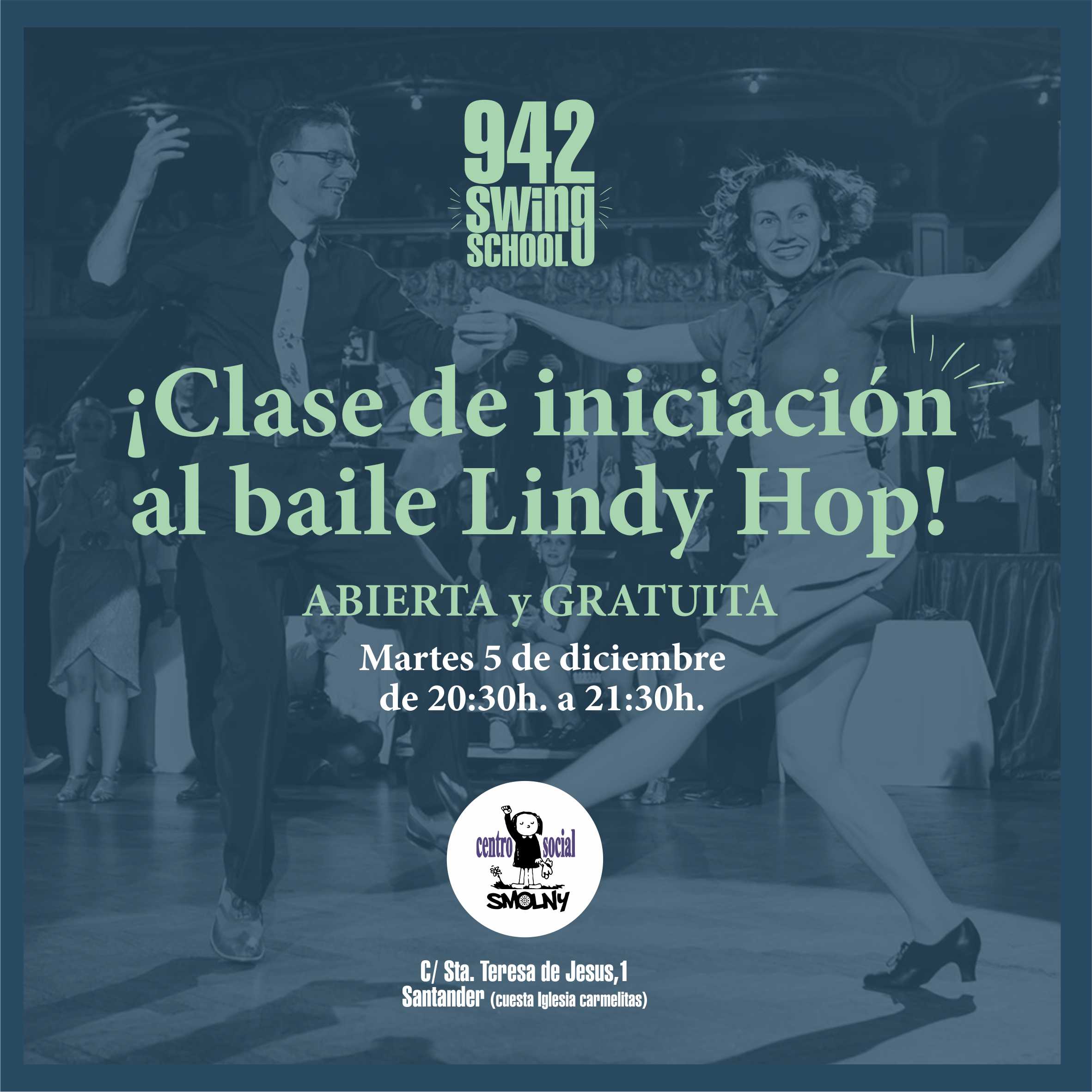 942SwingSchool ofrece una clase abierta y gratuita de iniciación al baile Lindy Hop el martes 5 de diciembre de 20:30 a 21:30 en el Centro Social Smolny.