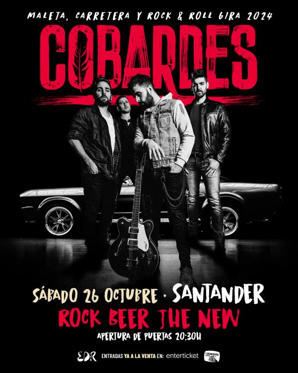 “Maleta, carretera y Rock & Roll 2024” es la nueva gira de Cobardes, que va a llevar a la banda revelación de 2023 a ciudades como Gijón, Guadalajara, Toledo, Salamanca, Tarragona, Bilbao, Santander, Málaga, Sevilla, Madrid y Barcelona con motivo de la presentación de su disco “Que empiece el baile”. Además, en los conciertos no faltarán las canciones de su álbum debut, “Ceniza y viento”, temas sobre los que se cimenta su meteórica trayectoria.