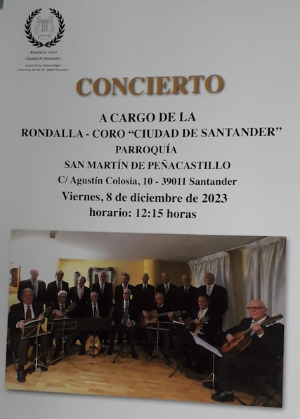 Concierto a cargo de la Rondalla Coro Ciudad de Santander en la Parroquia San Martin de Peñacastillo (C/Augusto Colosia 10).