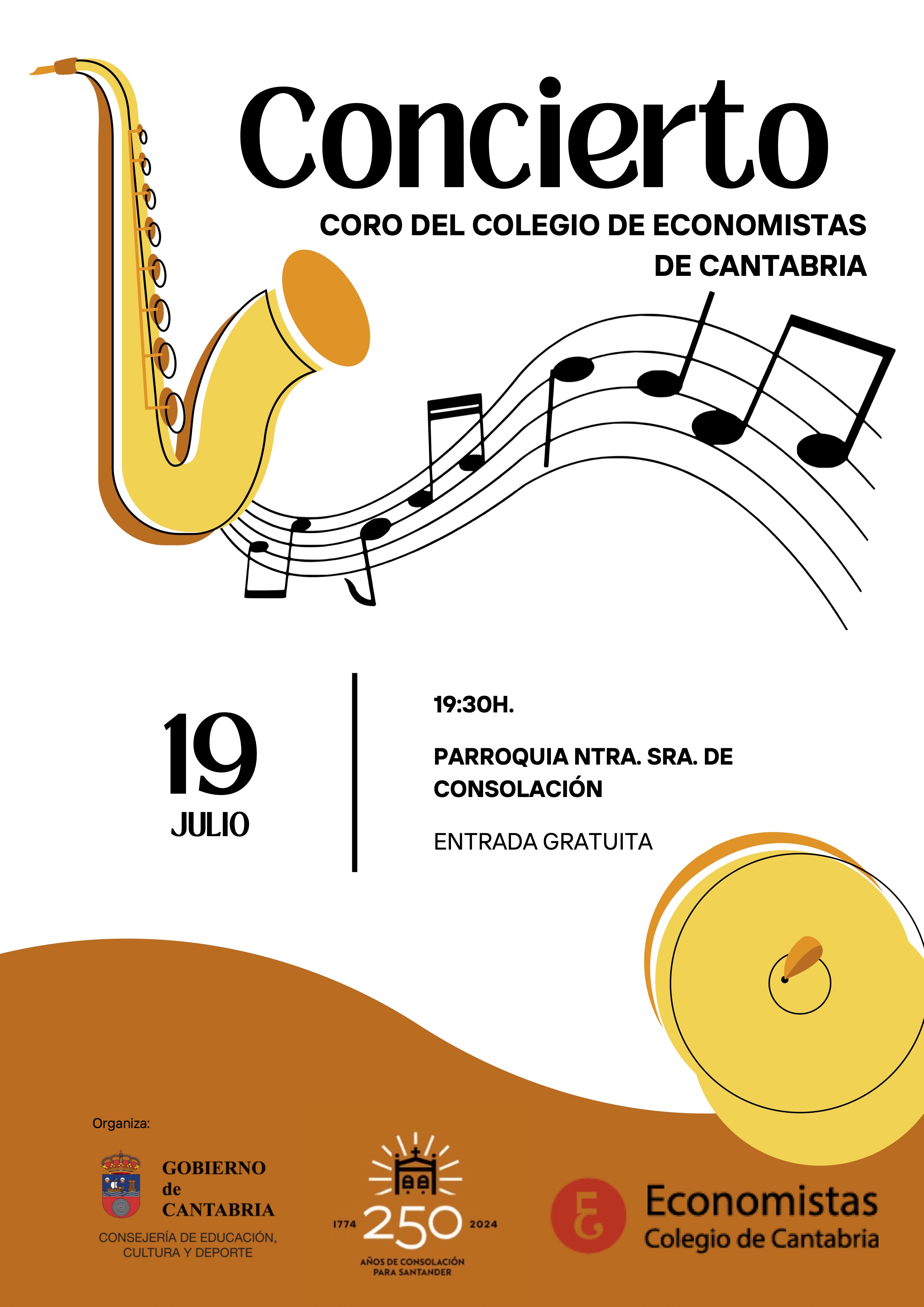 En este contexto, el viernes 19 de julio a las 19:30 h, se celebrará en la iglesia de Ntra. Sra. de Consolación un concierto a cargo del Coro del Colegio de Economistas de Cantabria.