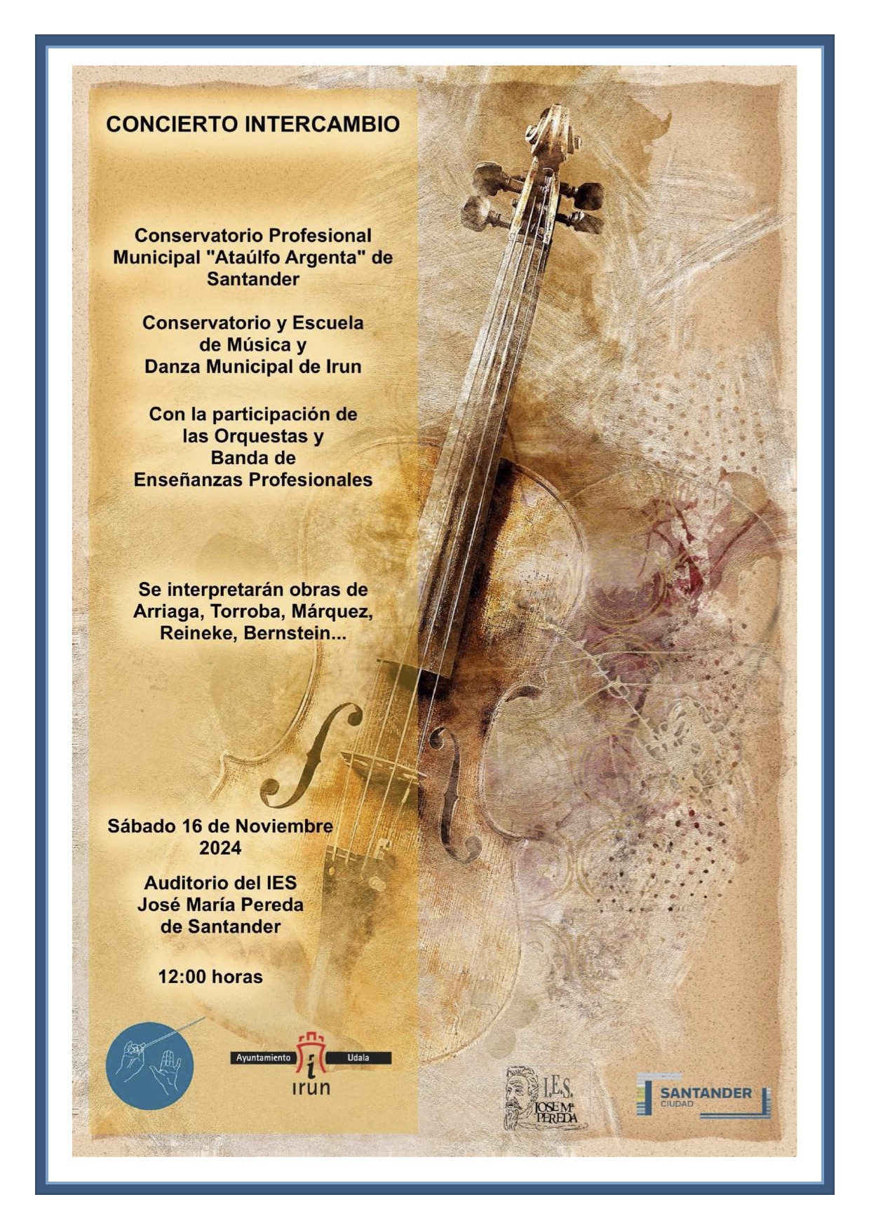 El conservatorio municipal Ataúlfo Argenta celebrará este fin de semana un intercambio musical con el conservatorio y escuela de música y danza municipal de Irún, que incluirá un concierto conjunto en el auditorio del IES José María de Pereda, el sábado 16, a las 12.00 horas.