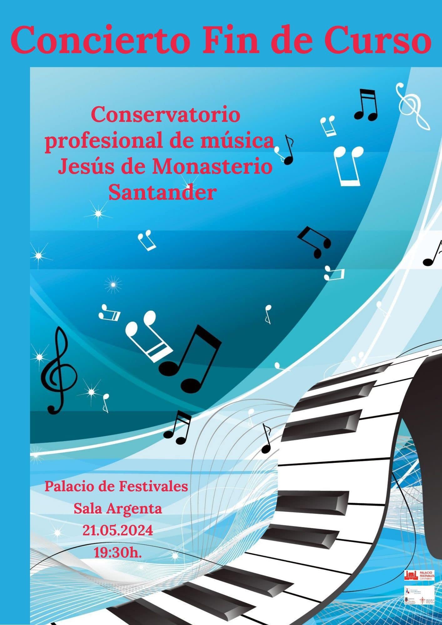 El martes 21 de mayo, a las 19:30, el Conservatorio Jesús de Monasterio celebra su encuentro anual en el Palacio de Festivales, donde alumnado, profesorado y familias se encontrarán para dar el broche final al curso.