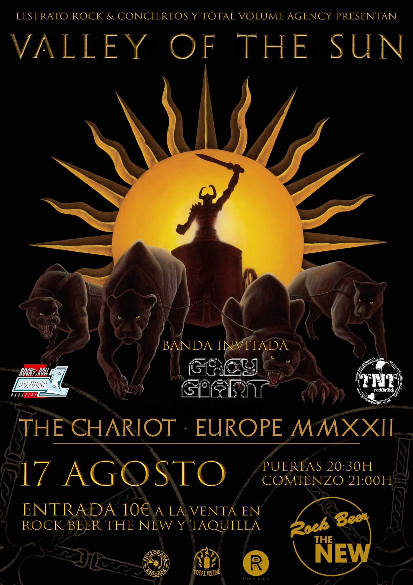 Durante la última década, Valley of the Sun han incendiado escenarios en toda Europa y USA, lanzado tres álbumes de rock & roll de alto octanaje y conquistado a miles de fieles fanáticos en el camino. Ahora, tienen la vista puesta en dominar el mundo con su álbum más impresionante hasta la fecha, The Chariot, que se publicará este verano de 2022 por Ripple Music y Fuzzorama Records. Una ráfaga dinámica de riffs de alto volumen, melodías altísimas y ritmos furiosos servidos al estilo de Cincinnati, con una cerveza fría al lado.