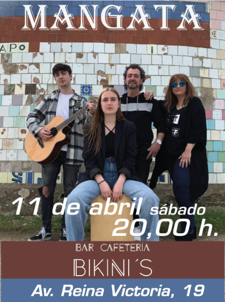 El grupo Mangata ofrece un concierto en el Café Bikini´s (C/ Reina Victoria 19) el sábado 11 de abril a las 20:00h.