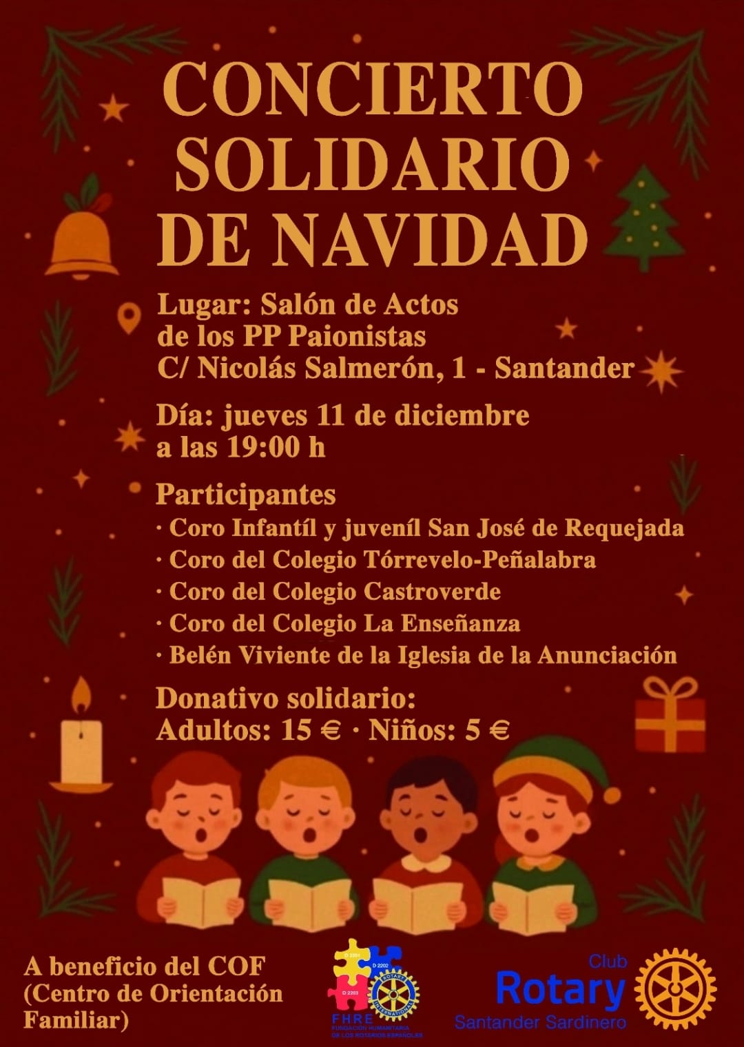 El Club Rotario Santander Sardinero organiza este concierto solidario de Navidad a beneficio del (Centro de orientacion familiar).