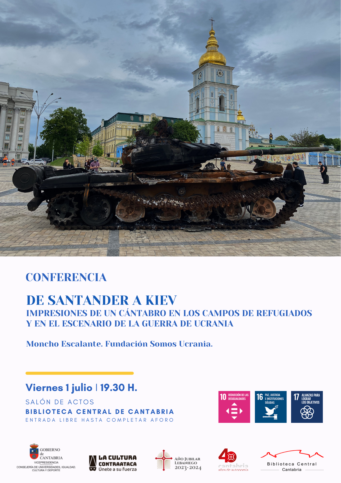 La Biblioteca Central de Cantabria organiza la conferencia que lleva por título “De Santander a Kiev: impresiones de un cántabro en los campos de refugiados y en el escenario de la Guerra de Ucrania”, que impartirá Moncho Escalante el viernes 1 de julio a partir de las 19.30 h.