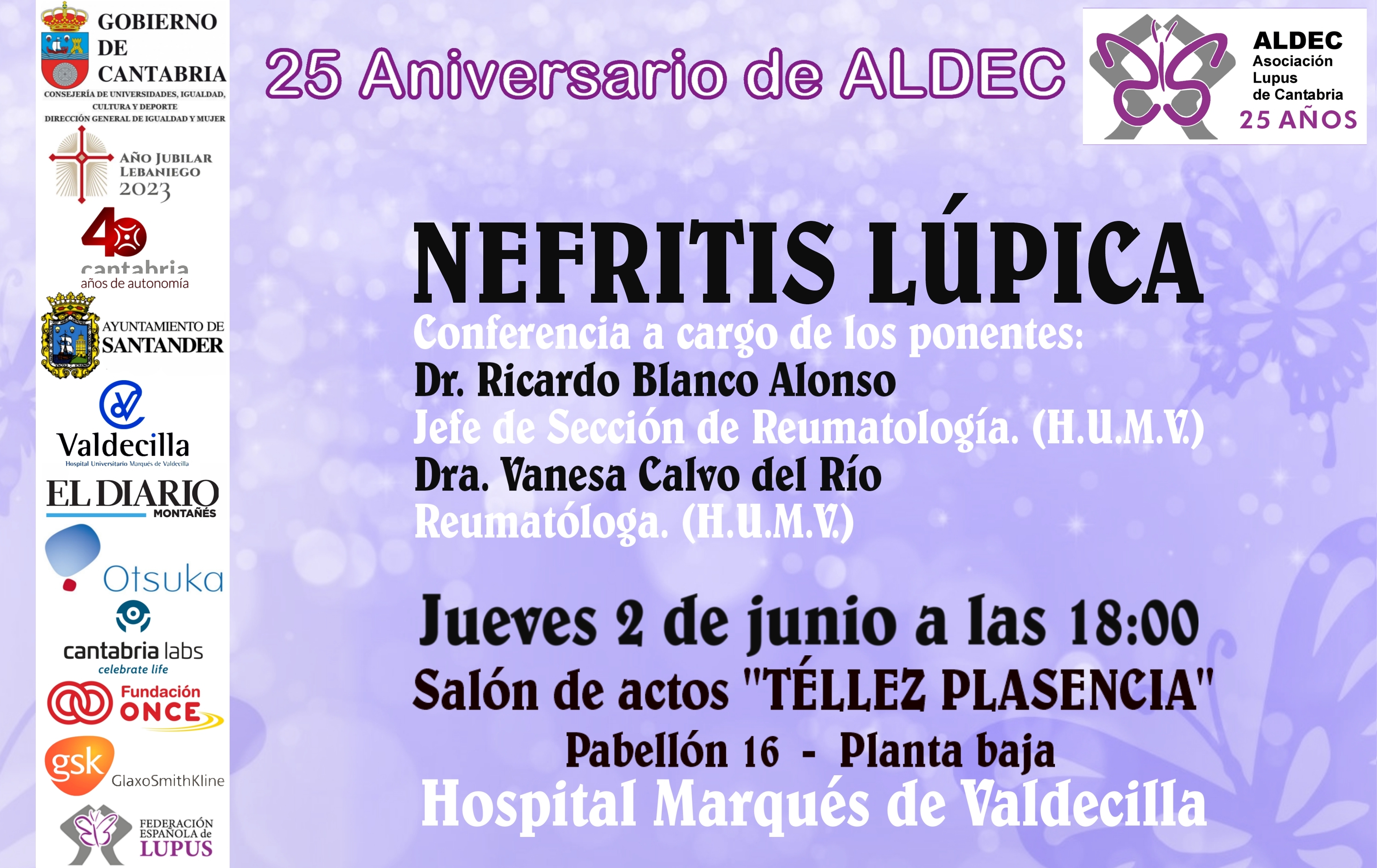 Para conmemorar el 25 aniversario de la Asociación Lupus de Cantabria (ALDEC) se ha organizado la conferencia “Nefritis Lúpica”, con las intervenciones de Ricardo Blanco y Vanesa Calvo.