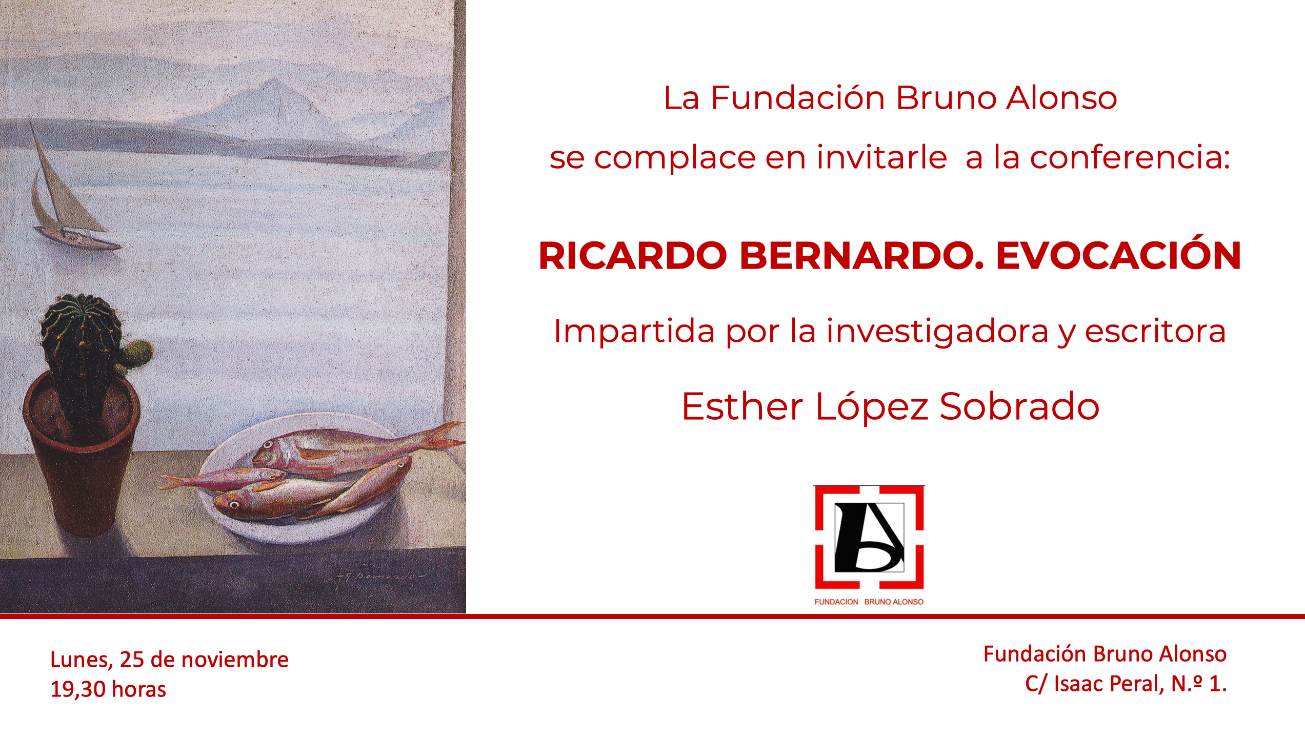 La Fundación Bruno Alonso organiza la conferencia "Ricardo Bernardo. Evocación", que será impartida por la investigadora y escritora Esther López Sobrado el lunes 25 de noviembre a las 19:30h.