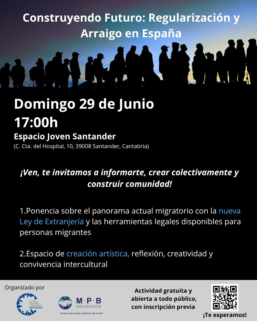 Desde Global Shapers Santander y en alianza con MPB Abogados, ponen en marcha el espacio “Construyendo Futuro: Regularización y Arraigo en España”, el domingo 29 de junio a las 17:00h en Espacio Joven.